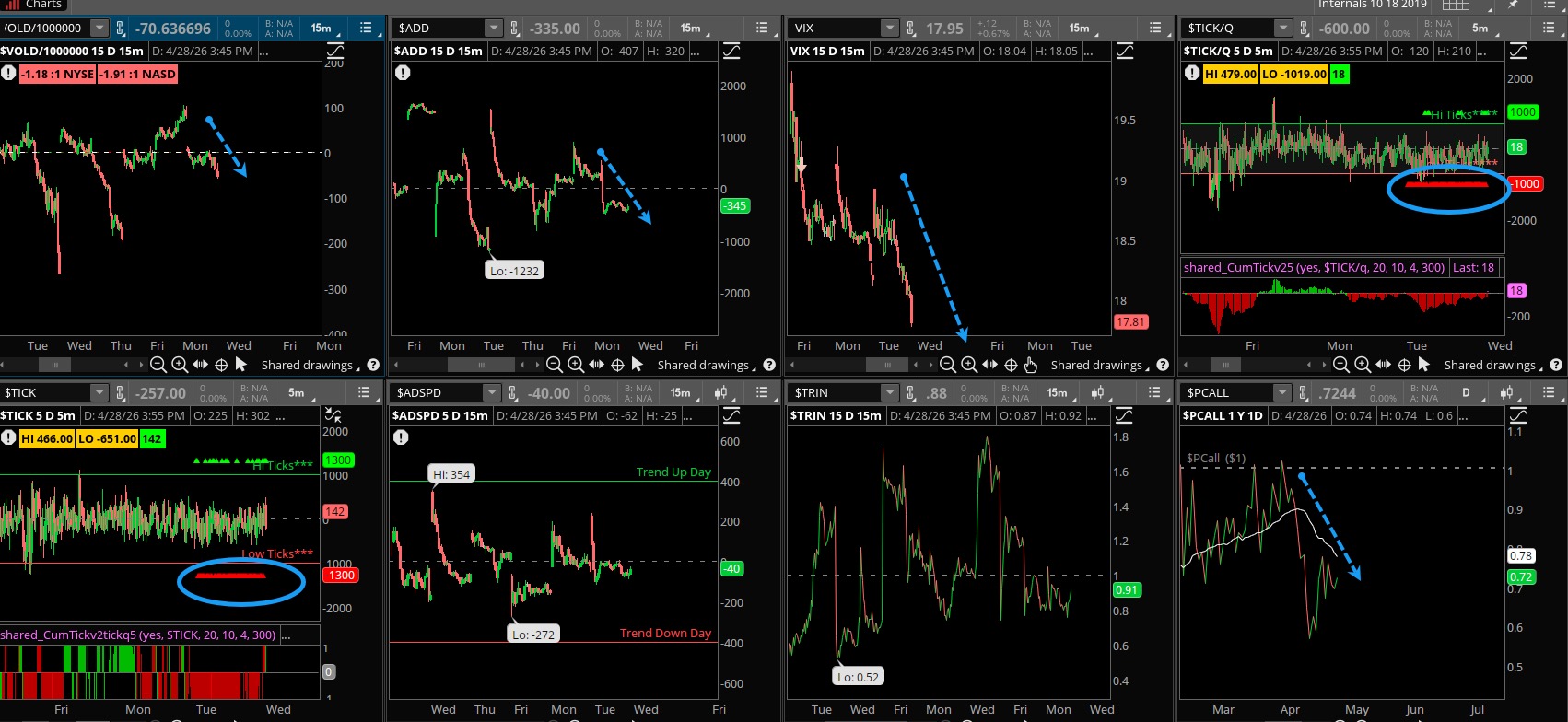 More damage due to the internals, nothing positive yesterday with the VOLD and ADD down below zero. VIX did plunge from the highs but it took quite the effort to get it below 18, ticks were demonstrably red all day, heavy selling all session long. Put/calls remain contained. We’ll find out soon if this is just a general rest period or not, expect to big moves later in the week.