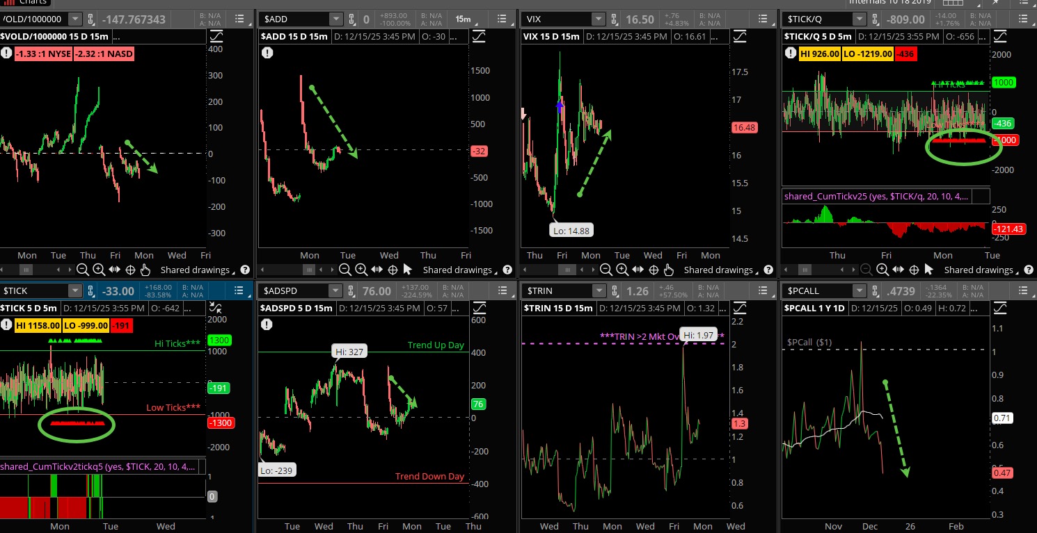 Nothing good to say about the internals except the put/call raced lower, meaning some heavy buy programs late on ES futures. Yet, the VOLD finished much lower and the ADD well off its highs, the VIX ripped higher early but finished with a modest gain. TICKS were heavy red especially later in the session, sell programs persist..