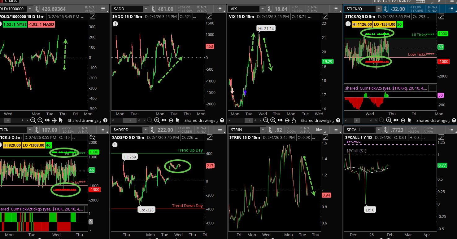 Another odd session for the internals as the VOLD really spiked hard end of the day, finishing at the highs. So too did the ADD which finished higher but not on the highs, the VIX spiked and fell hard as it did on Tuesday, while the ticks were spread even green/red, plenty of buy/sell programs all day. It is hard to get a read here as the stock market is still in a range and just oscillating.