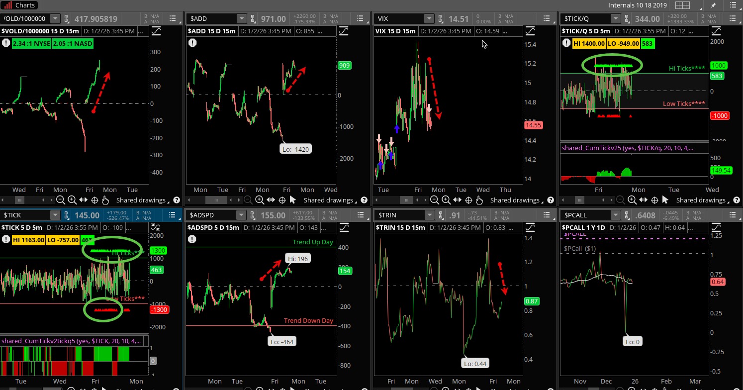 A pretty solid day for the internals with strength across the board. The VOLD stood out with strong performance on the first day of trading in the new year. ADD even finished positively, the VIX fell and TICKS were mostly buy programs, the bulls stifled the markets to close the down streak at 4 straight. TRIN was a bit lower, indicating bullish imbalances.