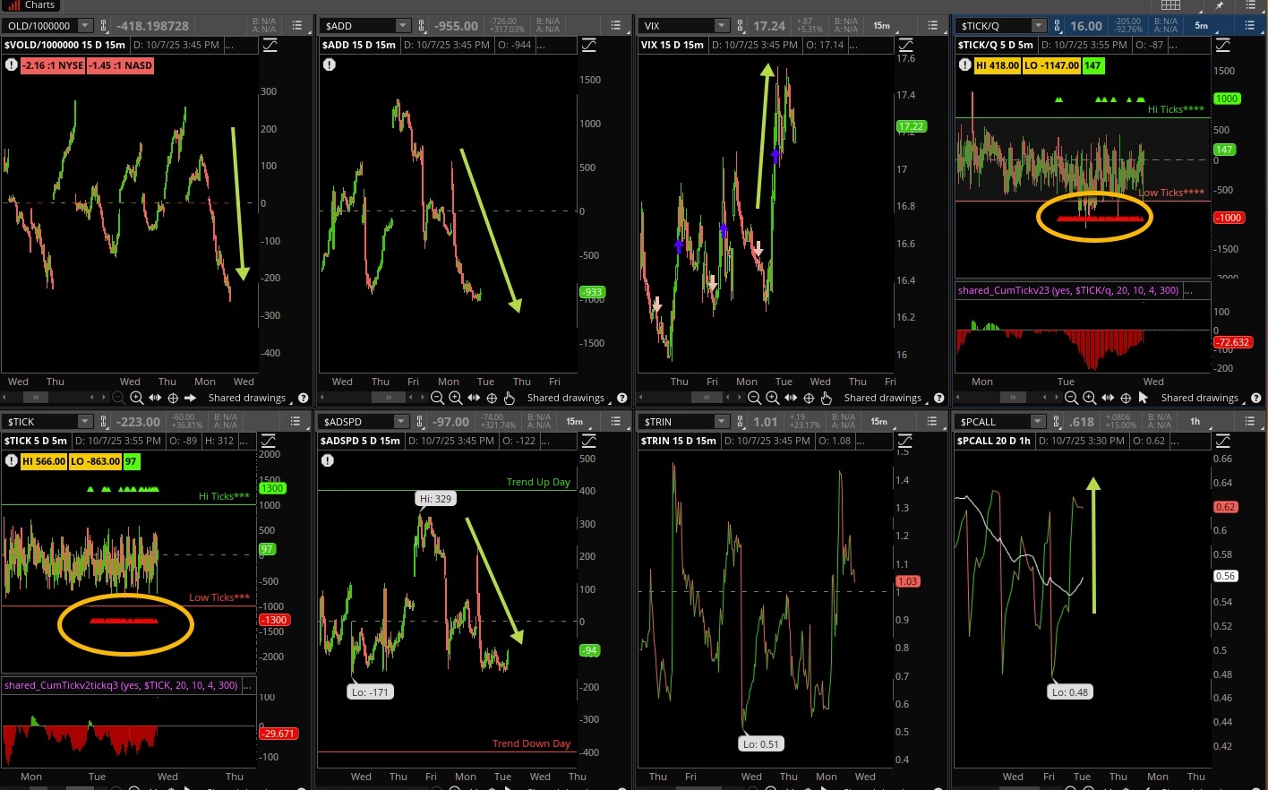 We could have predicted a miserable day from the start as the internals were weak at the opening bell and just worsened. The VOLD hit highs of the day on the open and fell all session, same for the ADD. Volatility started rising again, the VIX pushed higher as did the put/call, something we haven’t seen in awhile. Notable. Ticks were mostly red, several sell programs hit hard.