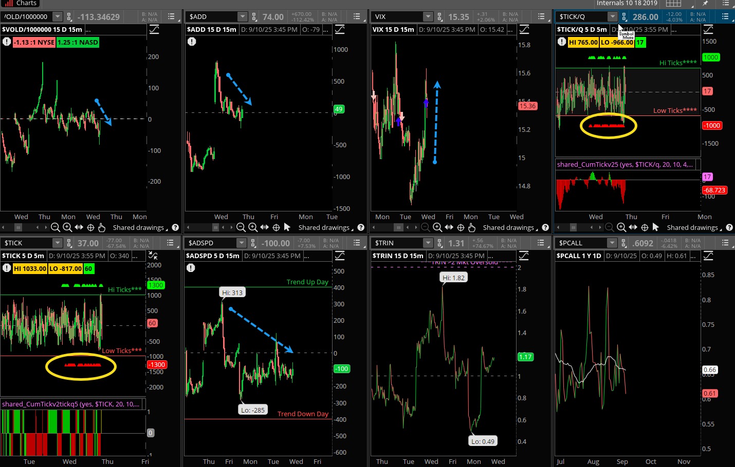The bears may be smelling an opportunity. No question the bulls had the ‘right of way’ after the Oracle earnings blowout. Notice the weak VOLD and the ADD, which made its high on the open and fell throughout the session. That is bearish, while TICKS were mostly red, that indicates sell programs all day long. VIX even shot higher and closed in the green. Again, an opportunity — but will it be squashed?